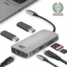 Adapter Multiport ACT AC7041 USB-C to HDMI 4K, LAN