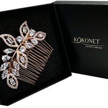 Grzebyk z listkami srebrny cyrkonie SWAROVSKI BOHO