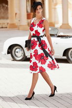 FIG & BASIL Niebieska sukienka pasek wzór (46)