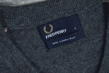 FRED PERRY Szary Wełniany Sweter Męski Vneck L