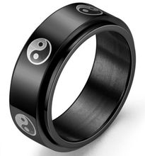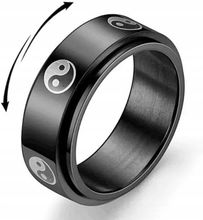 Pierścień Łańcuch Rotacyjny Czarny Srebrny Sygnet
