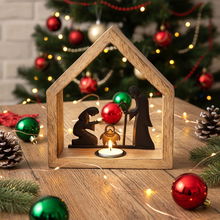 ŚWIĄTECZNA SZOPKA Z DREWNA BETLEJEM STAJENKA LAMPKAMI STOJĄCA OZDOBA 22CM