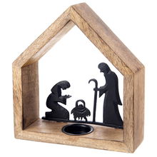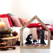 ŚWIĄTECZNA SZOPKA Z DREWNA BETLEJEM STAJENKA LAMPKAMI STOJĄCA OZDOBA CZARNA