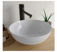Umywalka okrągła stojąca bez otworu na baterię koloru białego VMbathrooms