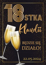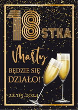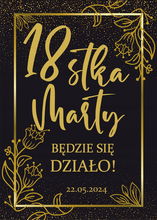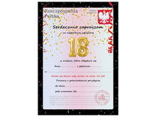Zaproszenia na urodziny, 18 (osiemnastka), czarno złote (ZZ-082), 5 szt.