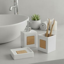 Zestaw akcesoriów łazienkowych Relaxdays 3 elementy biały bambusowy