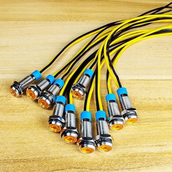 10 sztuk 6mm 12 V LED Metalowa lampka kontrolna wodoodporna - żółta