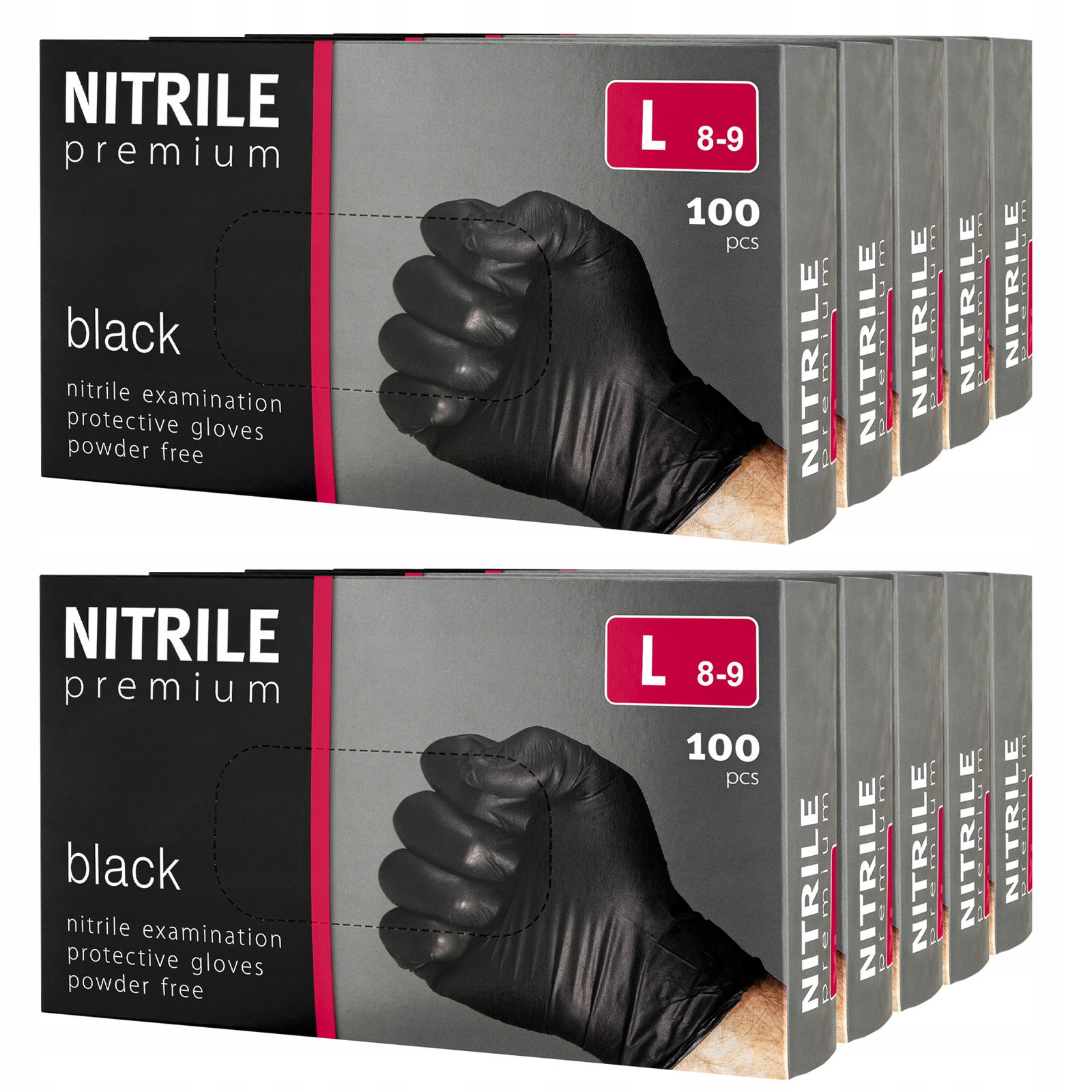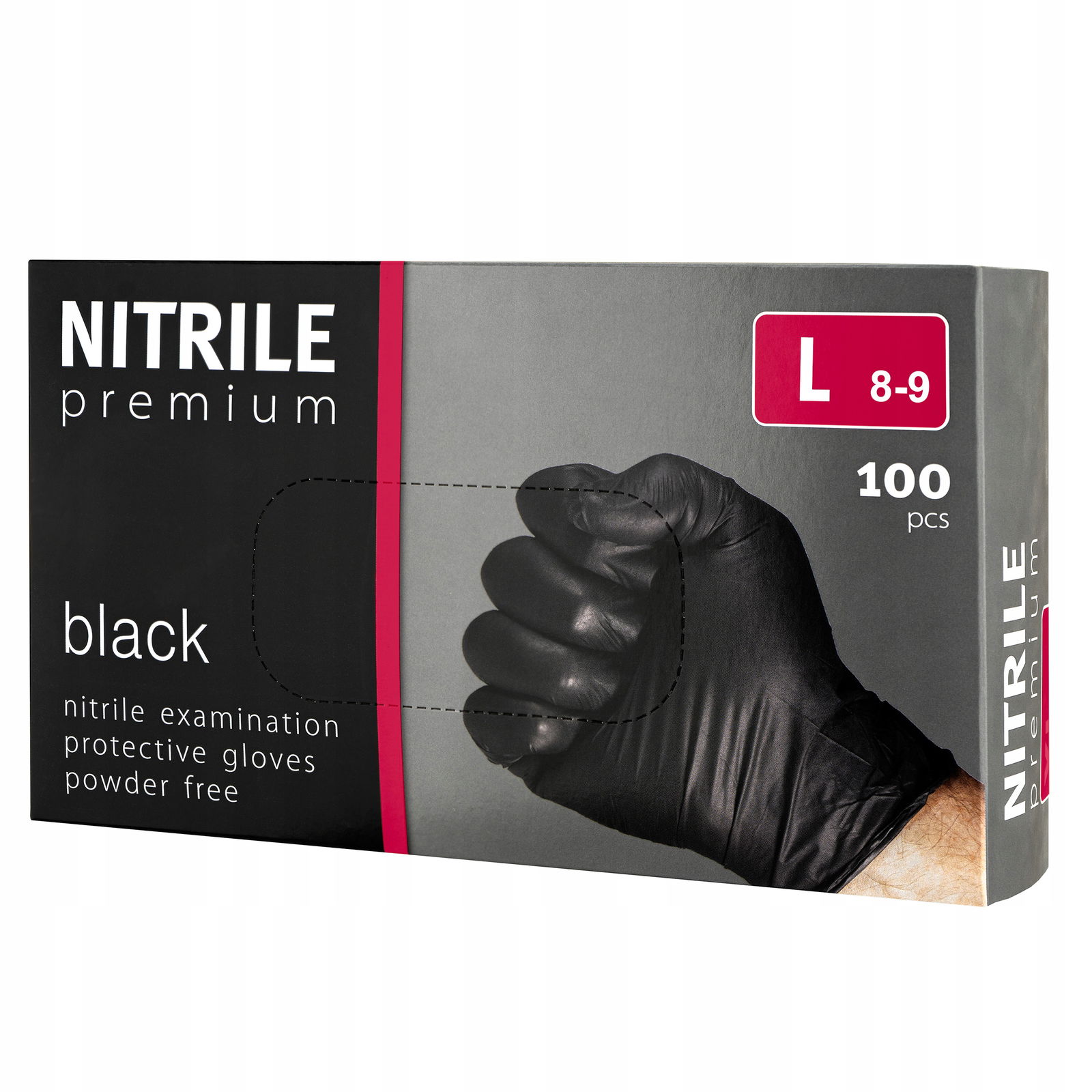 10 x Rękawice rękawiczki nitrylowe PREMIUM bezpudrowe [L] 100 sztuk czarne