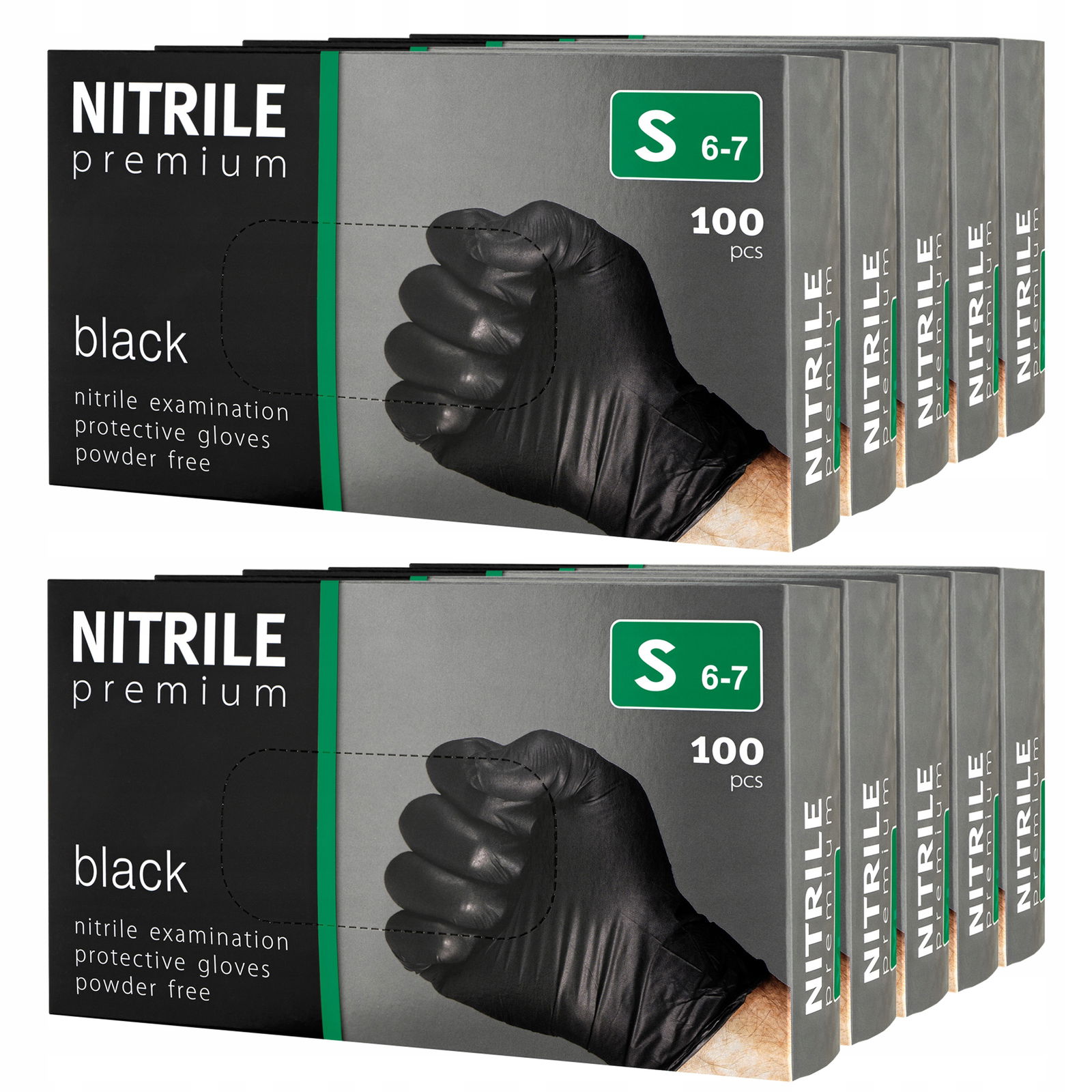 10 x Rękawice rękawiczki nitrylowe PREMIUM bezpudrowe [S] 100 sztuk czarne