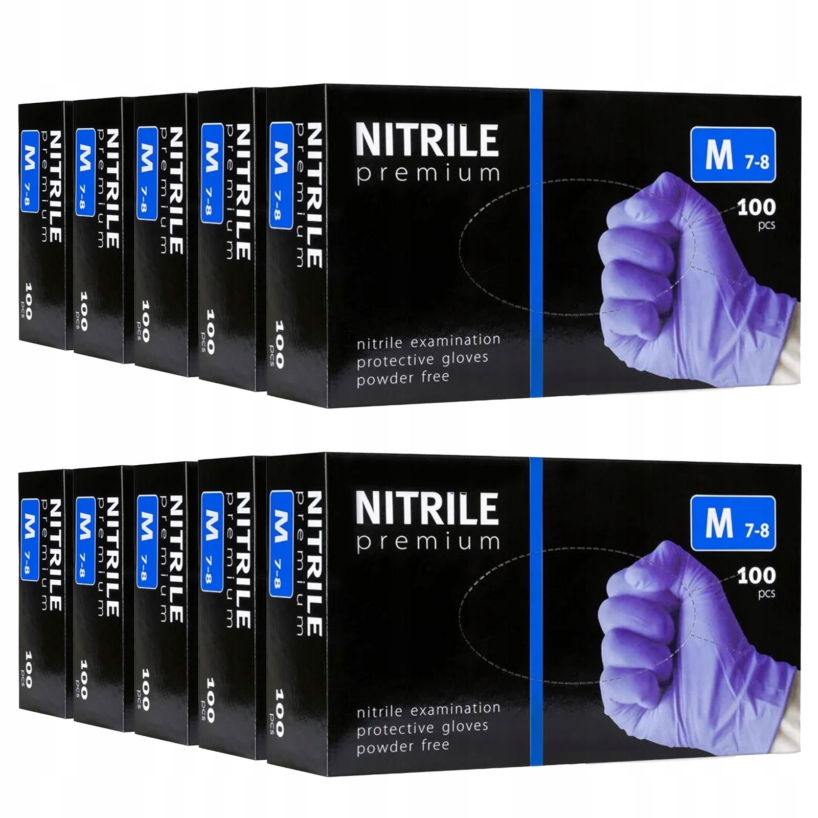 10 opakowań x 100 sztuk Rękawiczki diagnostyczne i ochronne nitrylowe bezpudrowe PREMIUM - rozmiar M