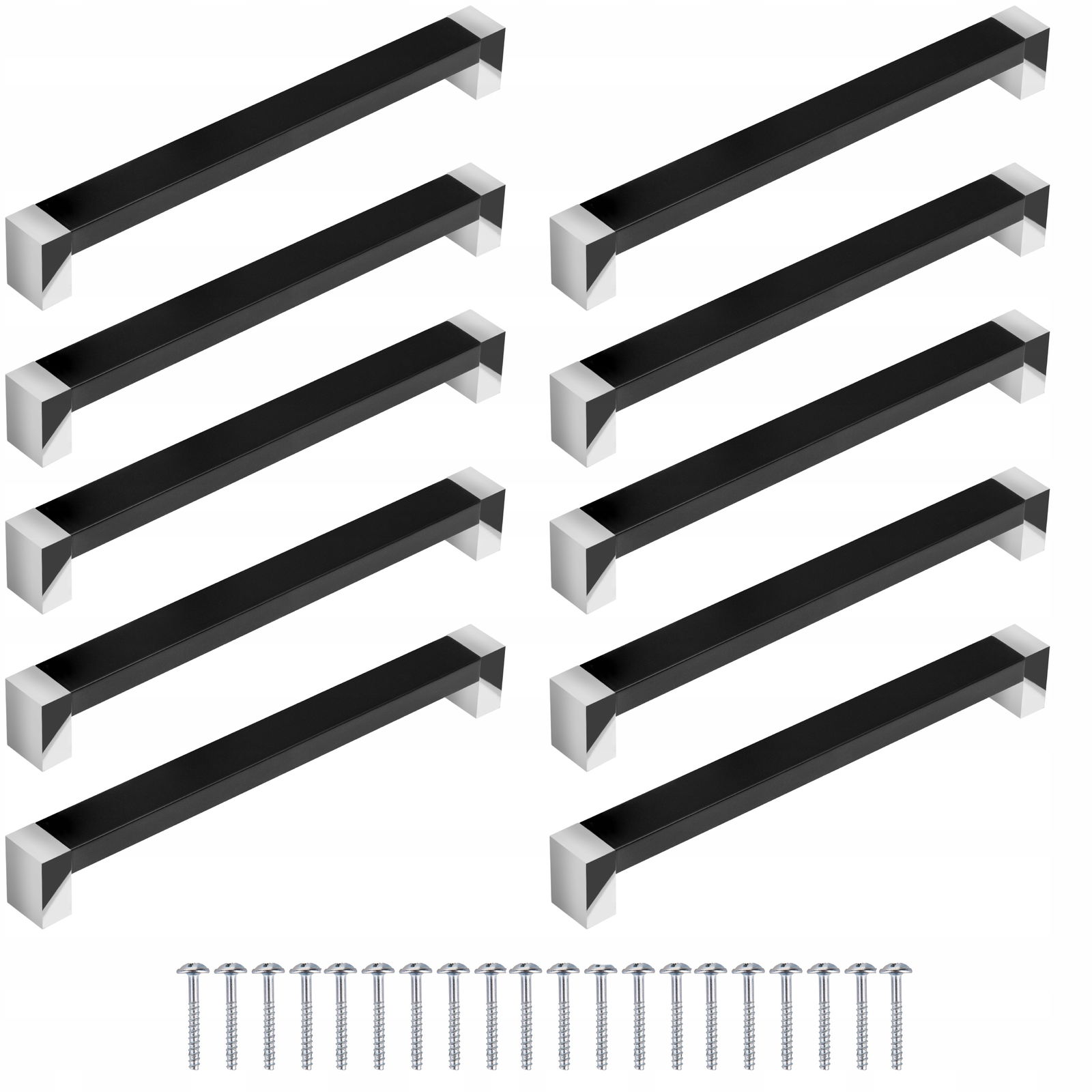 10szt Uchwyt meblowy do szafek Czarny/Chrom KM 160mm + wkręty