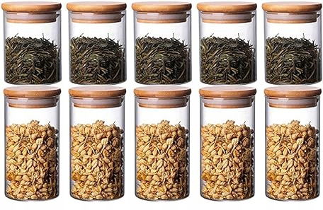 10x SŁOIKI DO PRZECHOWYWANIA SZKLANY ZESTAW BAMBUSOWA POKRYWKA NA PRZYPRAWY