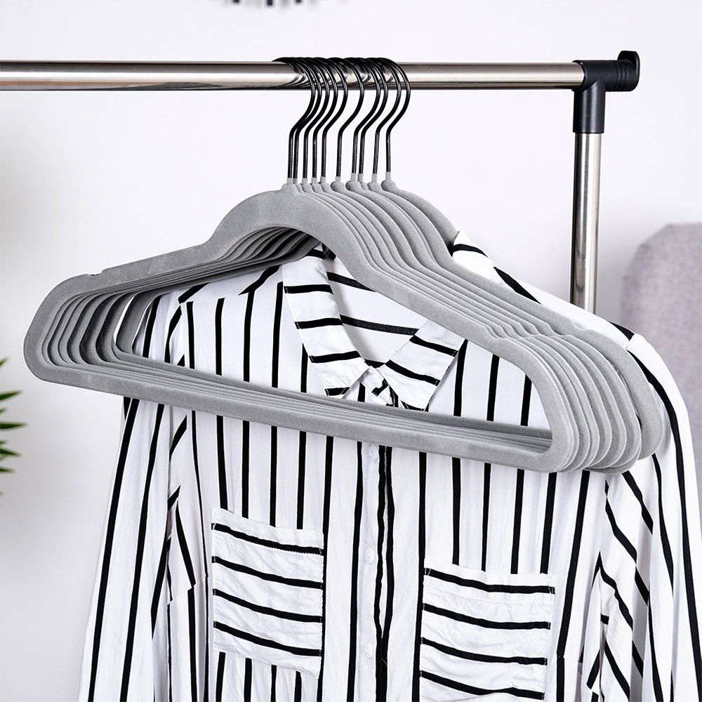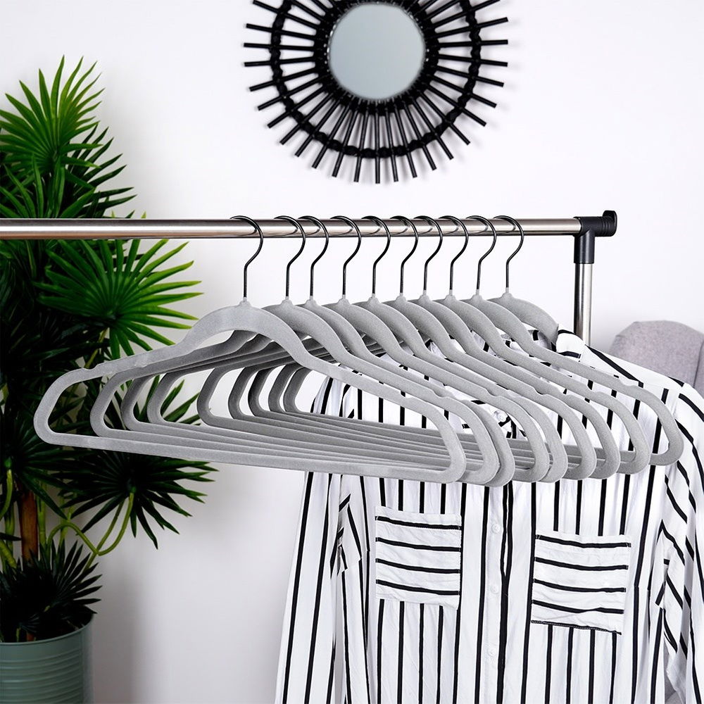 Elegancki design - Wykończenie wieszaków z miękkiego, welurowego materiału wygląda elegancko. Estetyczny wygląd wieszaków sprawia, że są one nie tylko praktyczne, ale również stylowe.