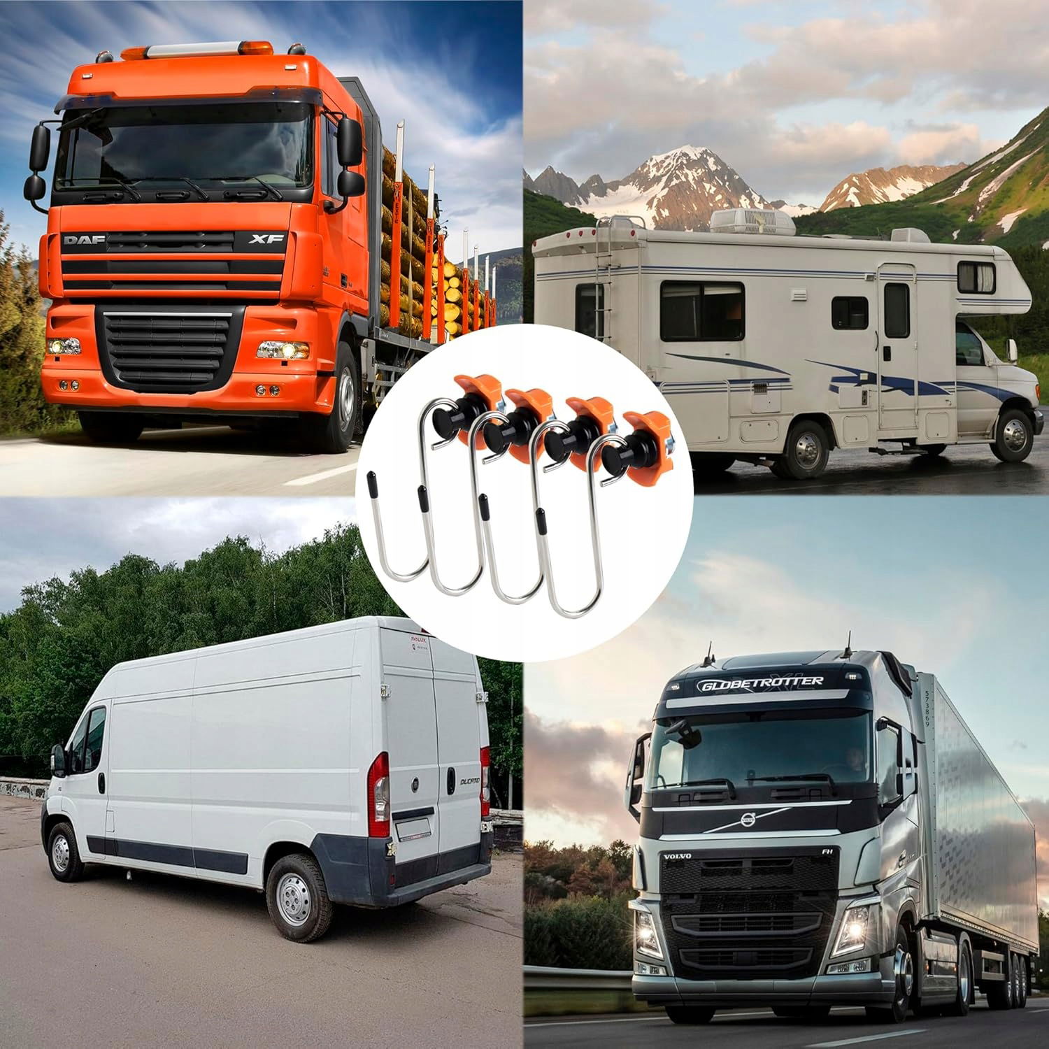 - Otwory mocujące do pasów mocujących w przyczepach, przyczepach kempingowych, transporterach i furgonetkach. Wystarczy doposażyć szyny mocujące.