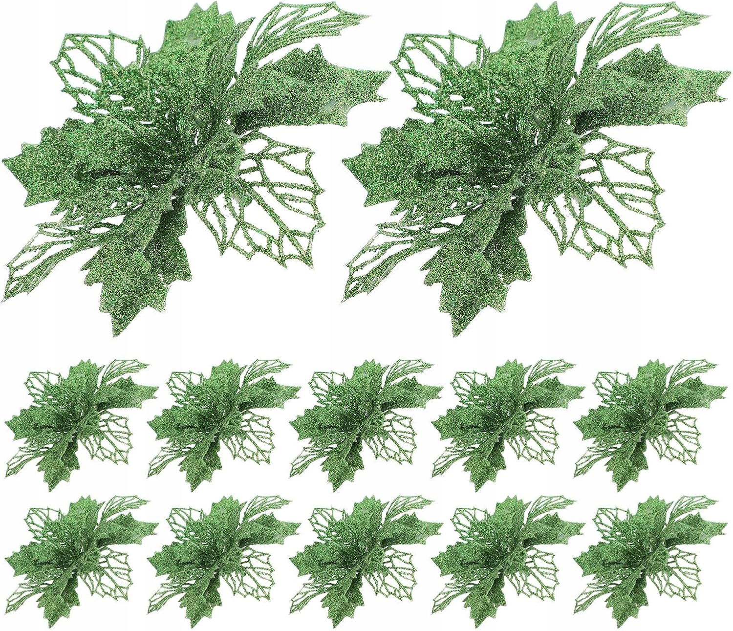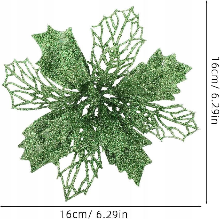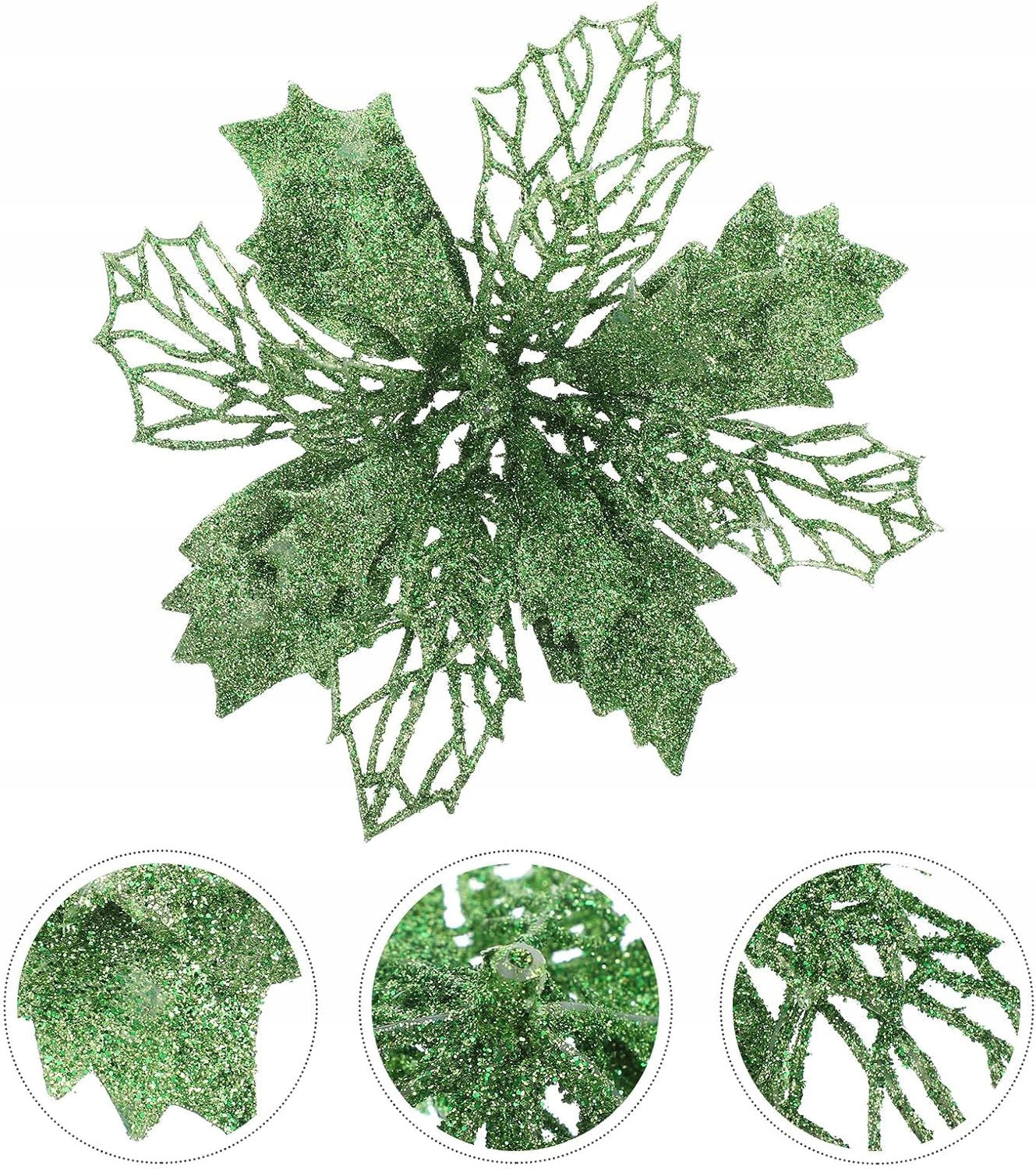 12 szt. brokatowych kwiatów poinsecji, sztuczne kwiaty świąteczne, puste kwiaty poinsecji do dekoracji stołu weselnego w girlandzie choinkowej (zielone)