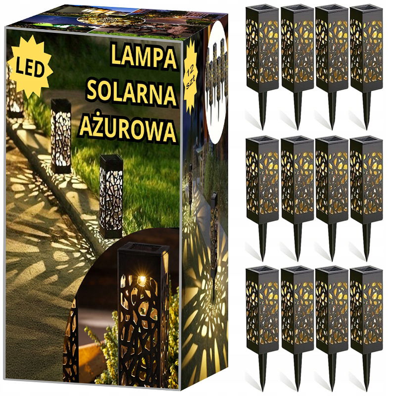 - 12x lampa solarna ażurowa;