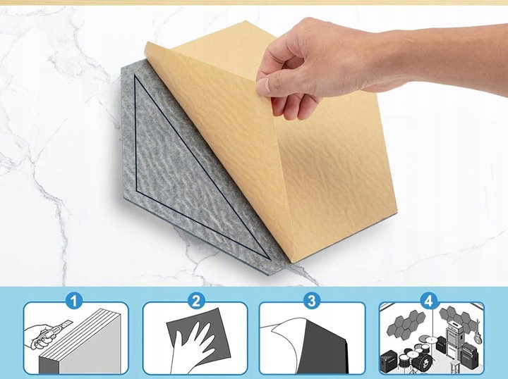 12x Panele Akustyczne Płyty Samoprzylepne Sześciokątne Pochłaniające dźwięk