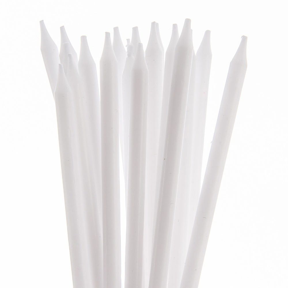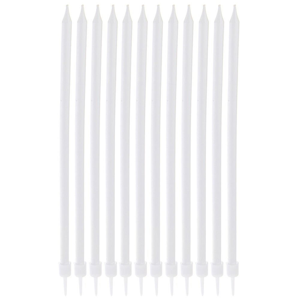 12X Świeczki do Tortu Urodzinowe Białe Długie Wbijane Podstawki 14,5 cm