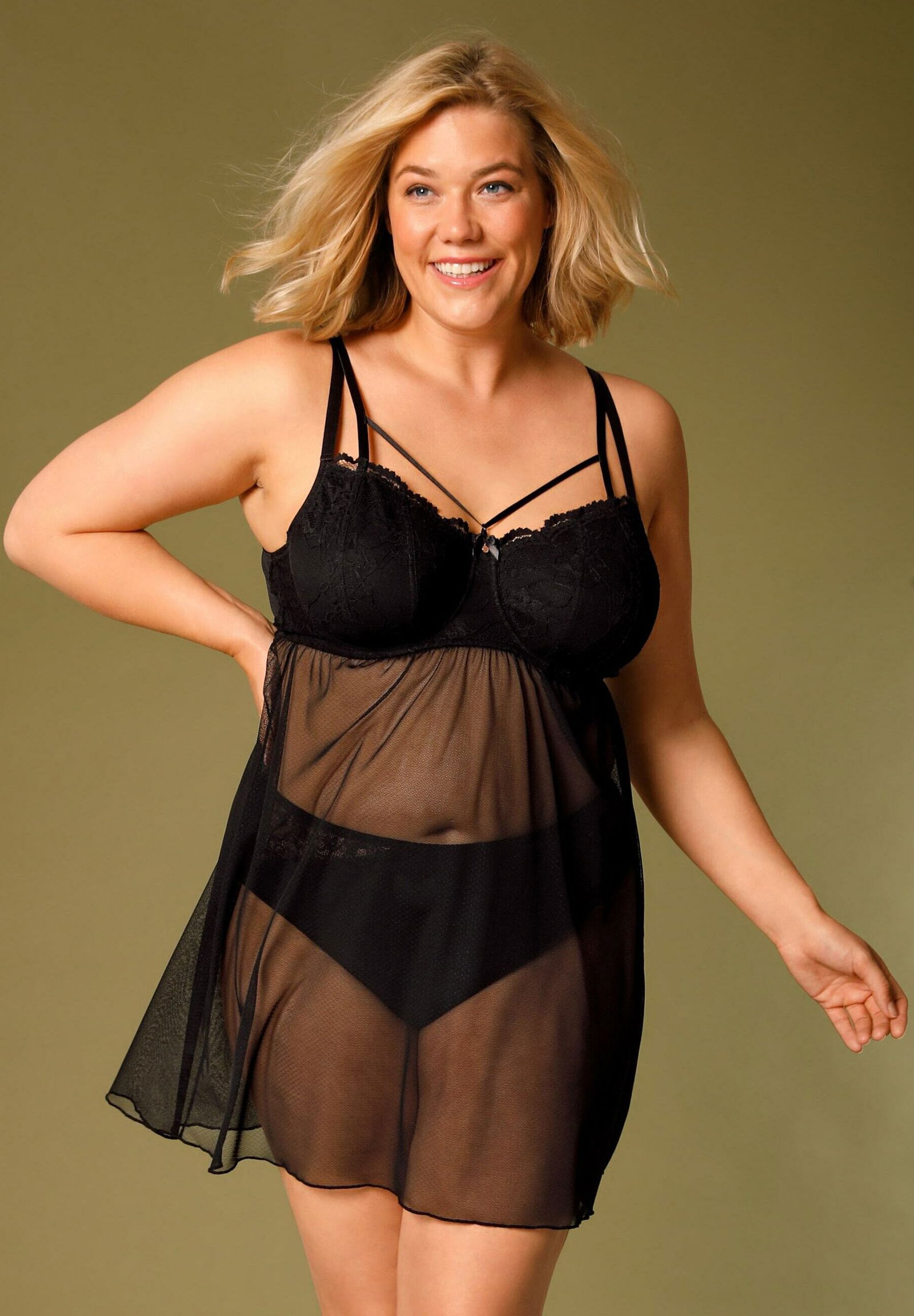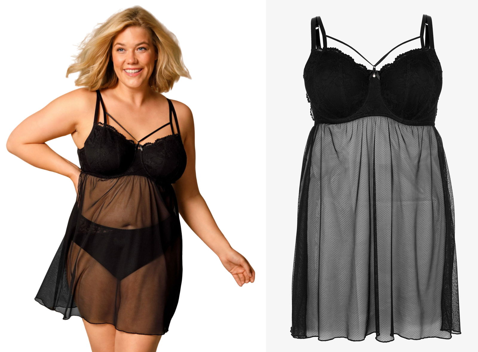 135T Ulla Popken TRUYOU Koszula nocna damska babydoll z fiszbinami 100C