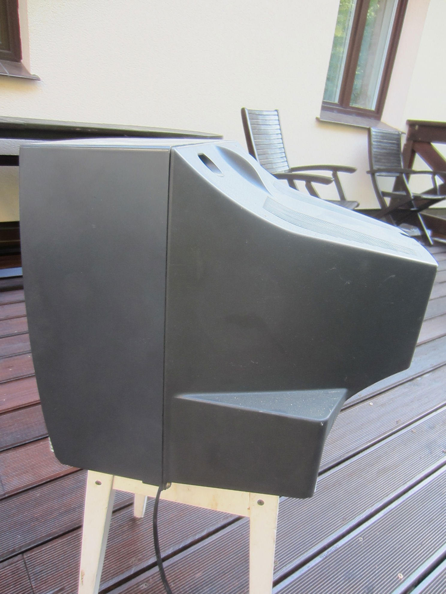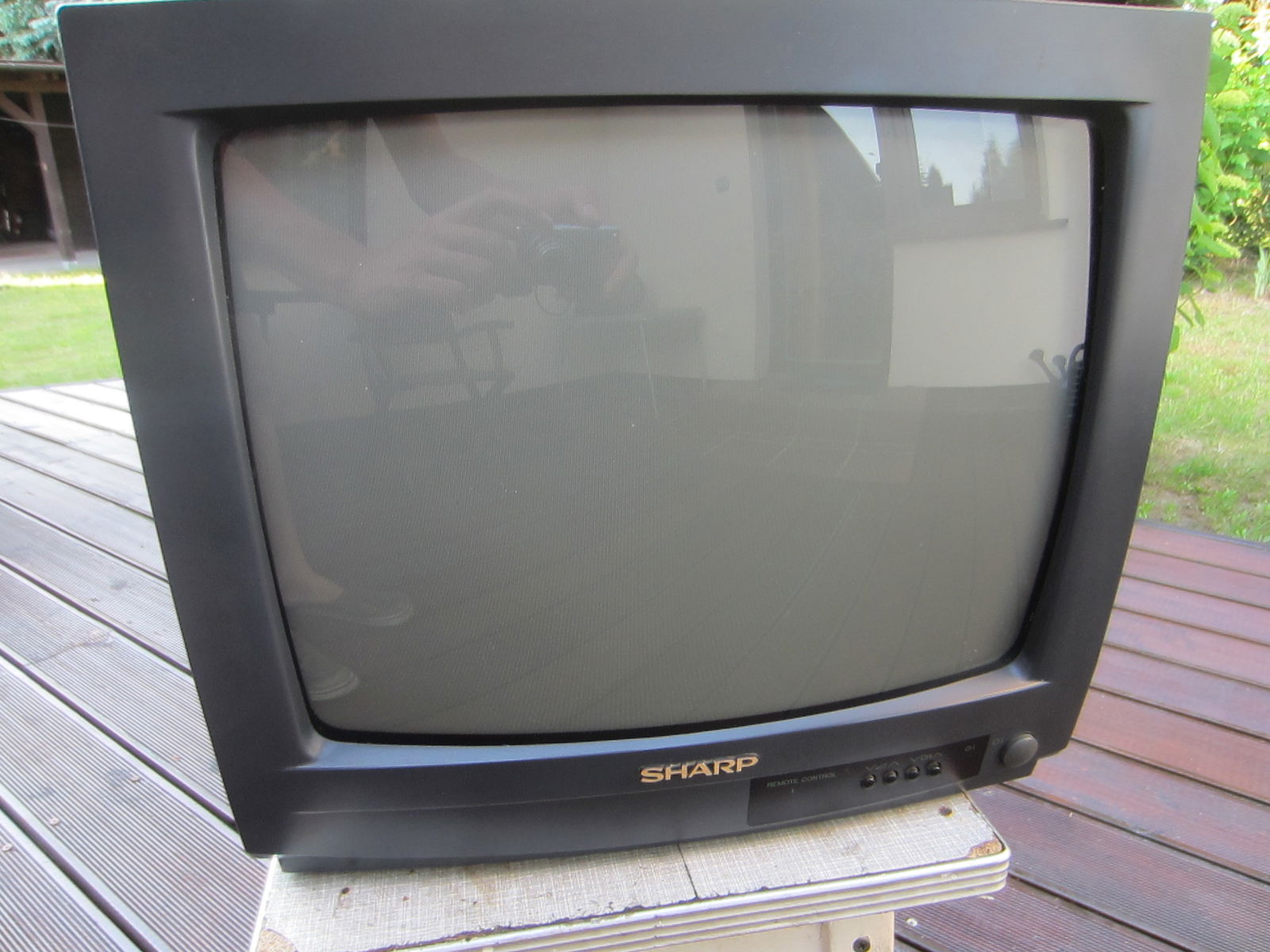 Przedmiotem oferty jest maly TV kineskopowy Sharp. Stan wizualny calkiem niezly, dziala stabilnie, bez problemow. Ekran nieporysowany. Wejscie tylko EURO, brak CINCH. Doskonaly do retro-projektow lub ogladania TV z kablowki, gdzie sygnal analogowy wciaz jest. Pilota brak, wejcie AV mozna wlaczyc bez niego.