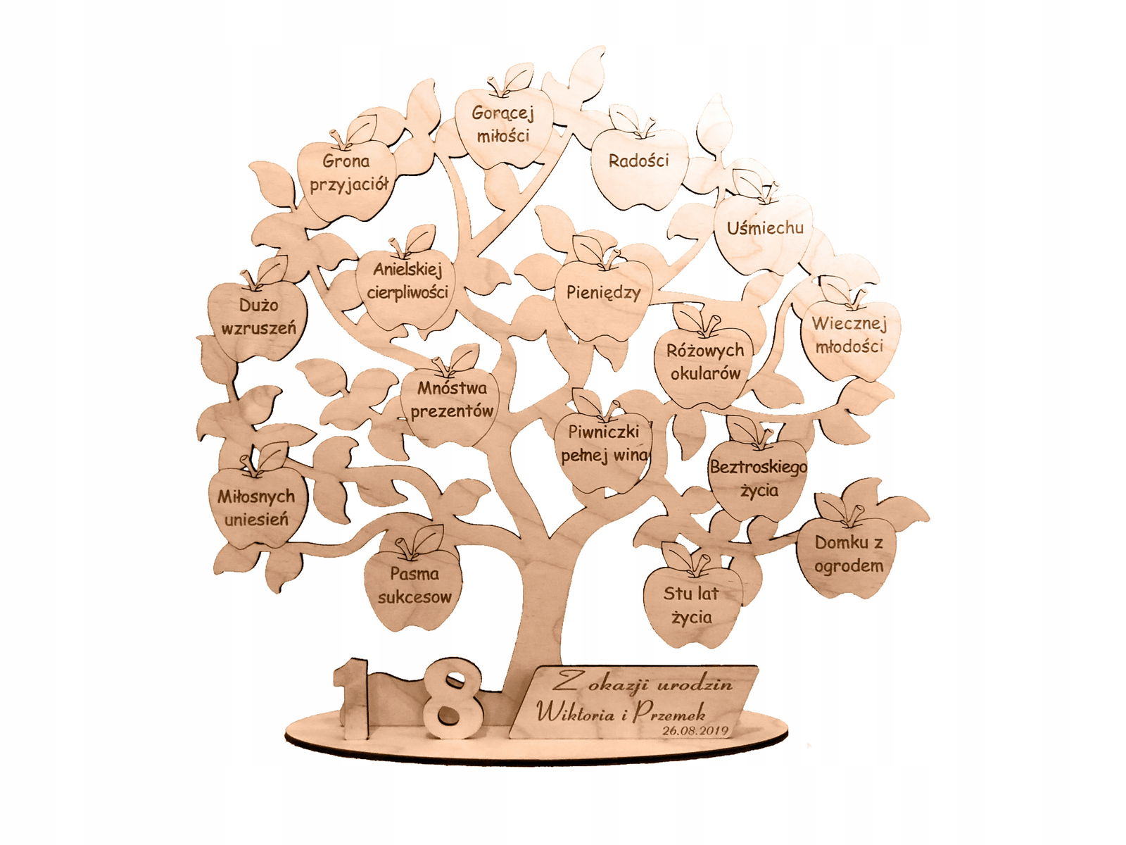 18-ste urodziny, osiemnastka, grawerowane drzewo
