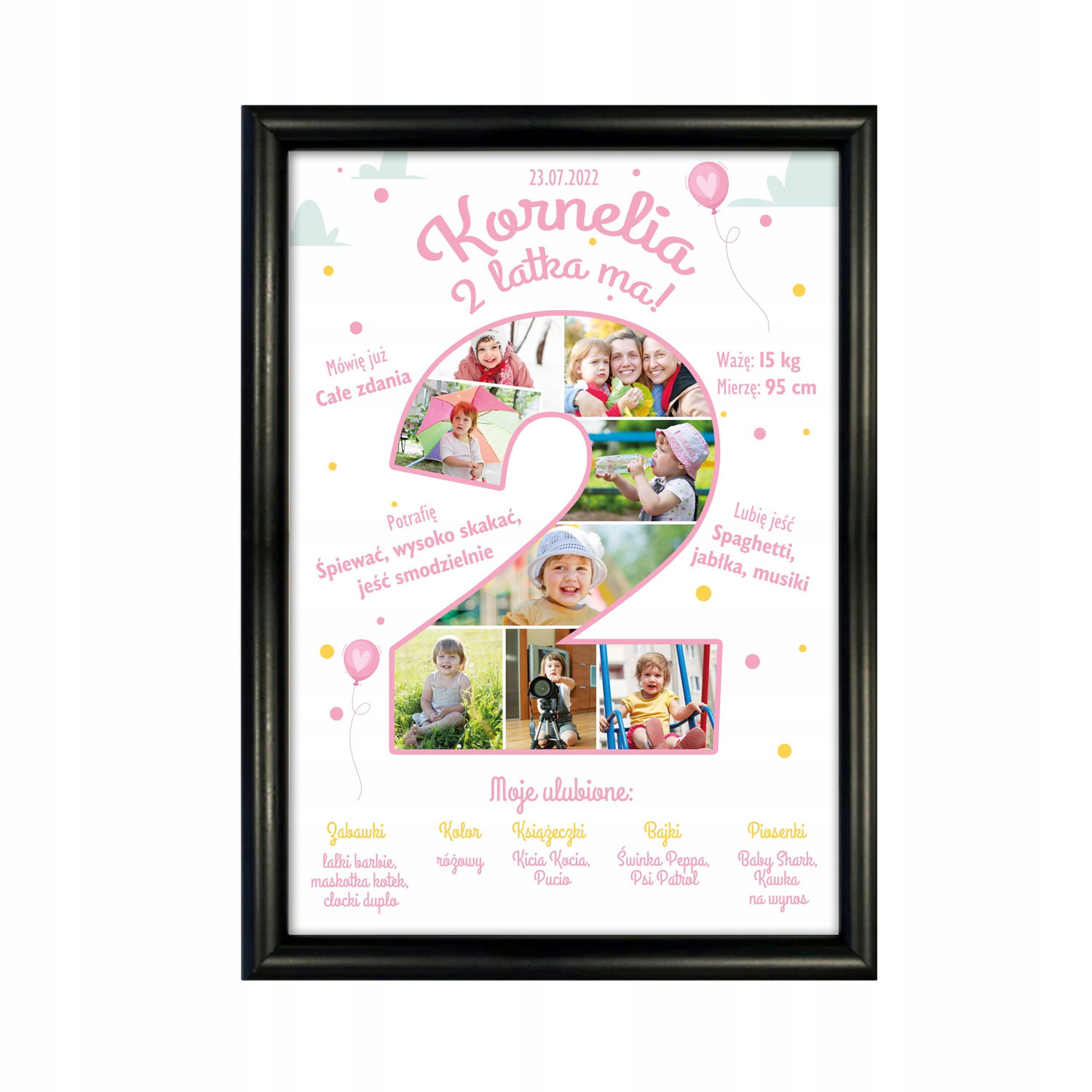 Plakat na DRUGIE URODZINY ze zdjęciami dziecka (rozmiar 40cm x 30cm)