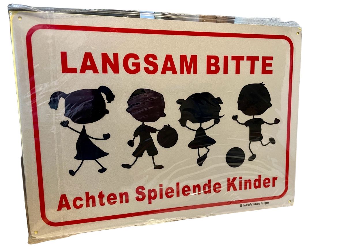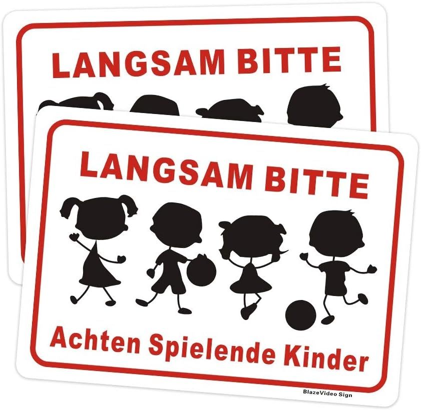 2 tabliczki parkingowe Zwolnij / Uwaga dzieci z napisem po niemiecku LANGSAM BITTE Achten Spielende Kinder