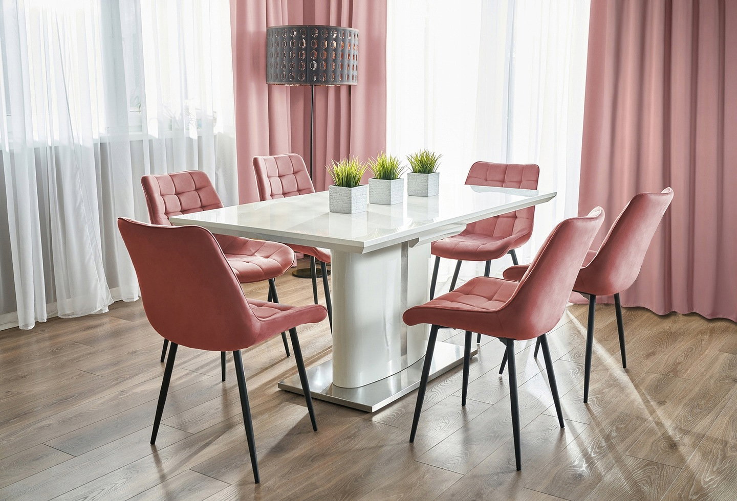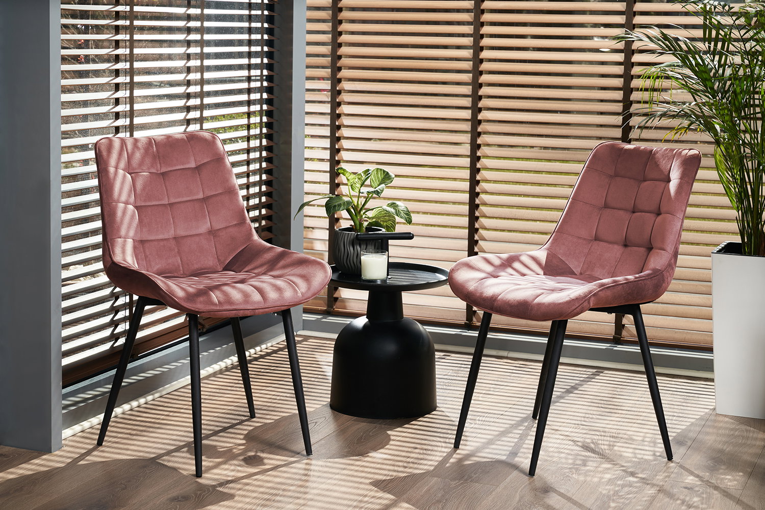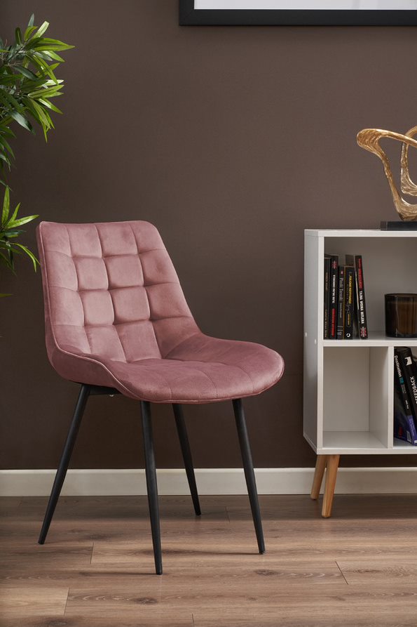Aksamitna tapicerka uszyta z welurowej tkaniny wygląda niezwykle delikatnie, a wysokie i smukłe nóżki w czarnym kolorze wyglądają bardzo szykownie oraz gwarantują idealną stabilność.