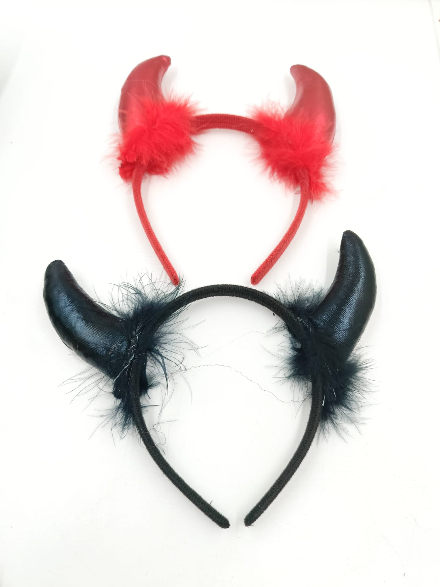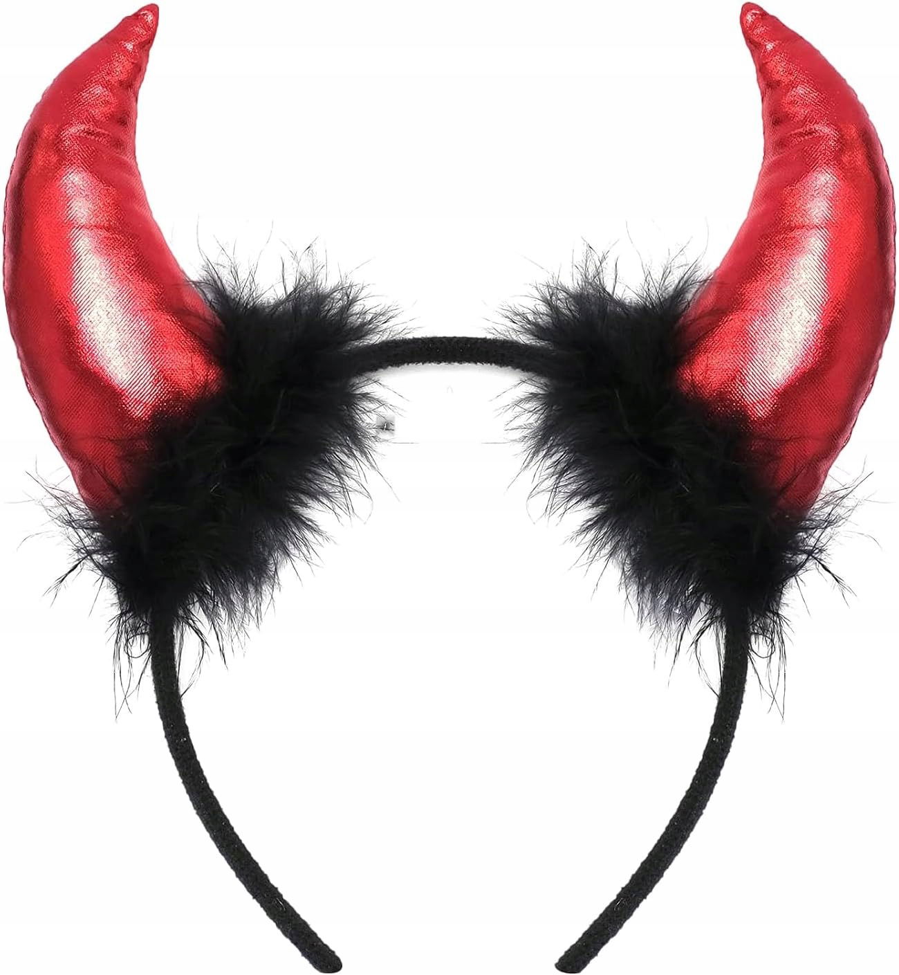 👿 Opaska z czerwonymi rogami: Błyszcząca, z efektownym futerkiem – dodaje diabelskiego uroku.