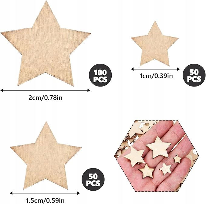 Zestaw 200 drewnianych gwiazdek marki Feliciay to idealny materiał do rękodzieła, dekoracji świątecznych i projektów DIY. Wykonane z wysokiej jakości, naturalnego drewna – gładkie, lekkie i trwałe.