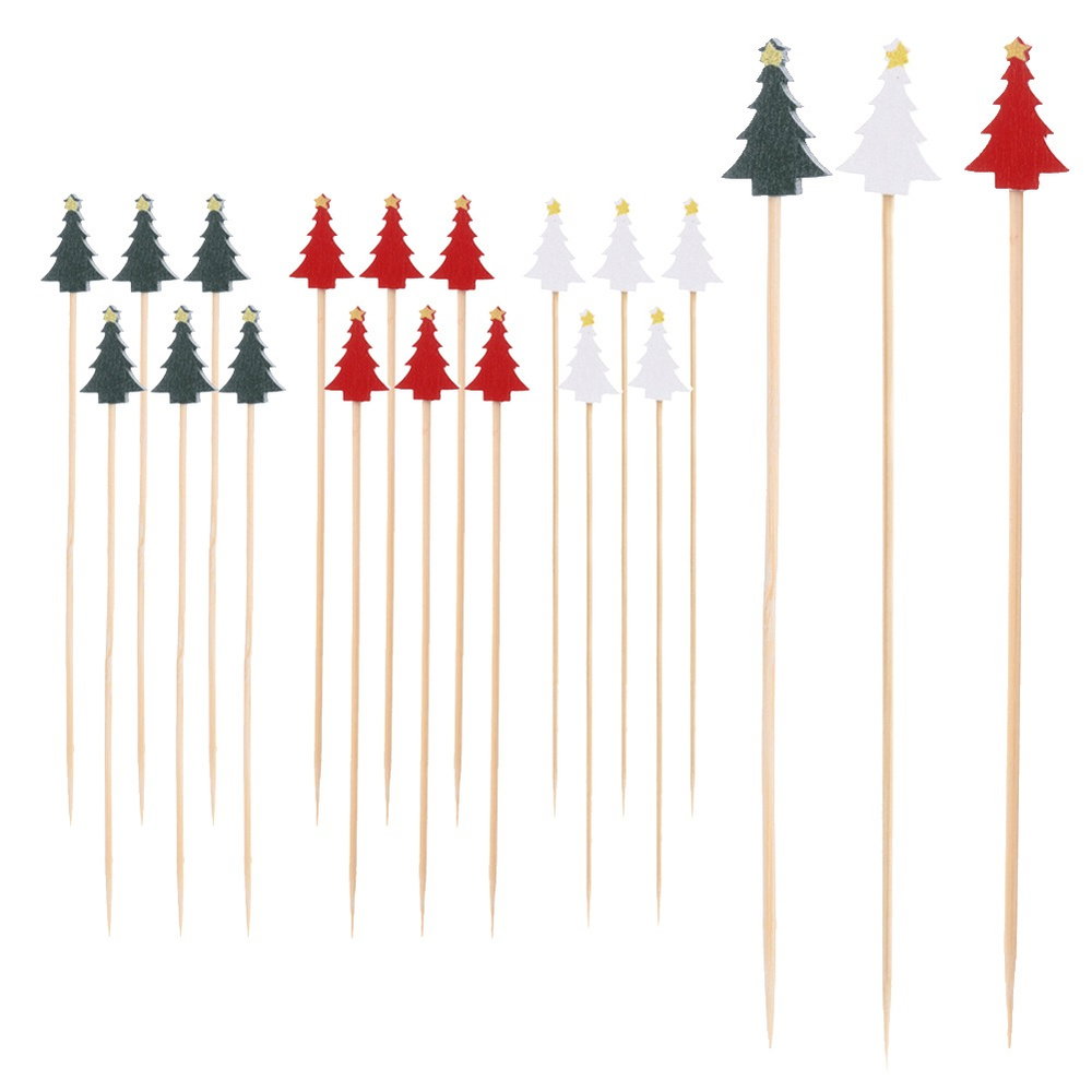 Zestaw 20 wykałaczek do przekąsek - Zestaw dwudziestu wykałaczek z ozdobami w kształcie choinek. Doskonałe do serwowania słonych i słodkich przekąsek podczas przyjęć, spotkań i uroczystości. Każda wykałaczka ma długość 13 cm.