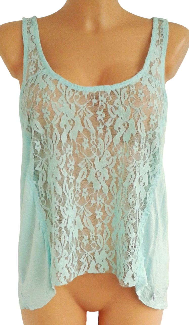 21T Hollister koronkowa bluzka top bez rękawów fason asymetryczny 38