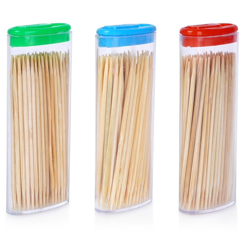 PRAKTYCZNE - Zestaw trzech opakowań drewnianych wykałaczek koktajlowych. Każde opakowanie zawiera 80 sztuk wykałaczek. Wykałaczki zapakowane w wygodne plastikowe pudełko. Długość każdej wykałaczki wynosi 6,5 cm.