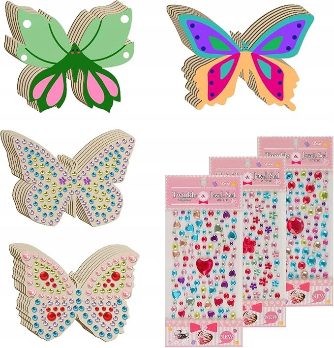 - Drewniany zestaw do robótek ręcznych: łącznie 24 sztuki motyli z drewna. Istnieją 4 różne kształty motyli, po 6 sztuk każdy. Jako prosta klasyczna dekoracja pełna prostego i naturalnego stylu. Ponadto w opakowaniu znajdują się 3 arkusze cyrkonii. Różne kształty cyrkonii i motyli mogą zaspokoić potrzeby dzieci w zakresie rękodzieła.