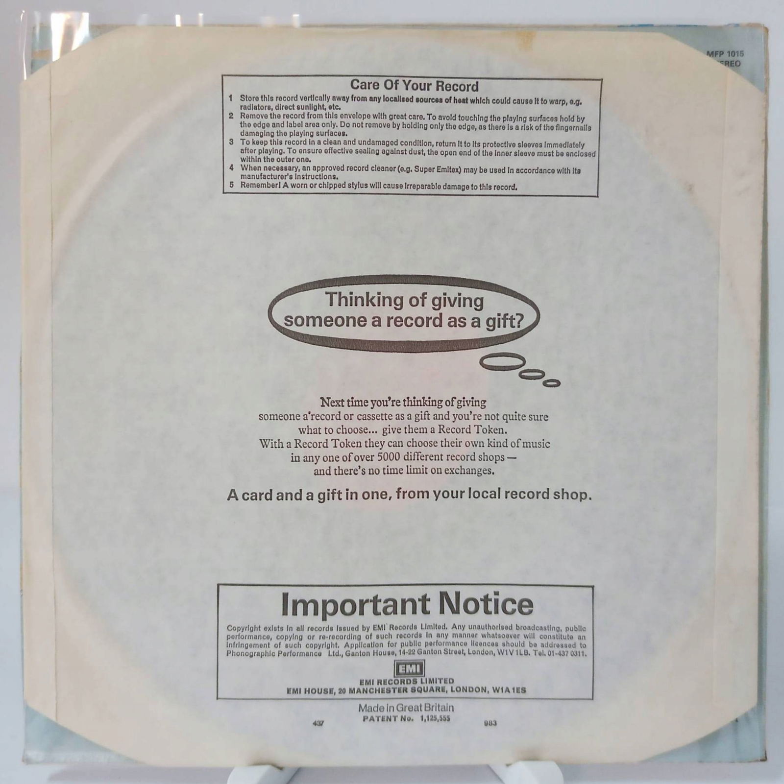 płyta: była wielokrotnie odtwarzana, ale nie odznacza się znaczącym spadkiem jakości dźwięku, mimo zauważalnych znaków na powierzchni oraz niewielkich zarysowań;