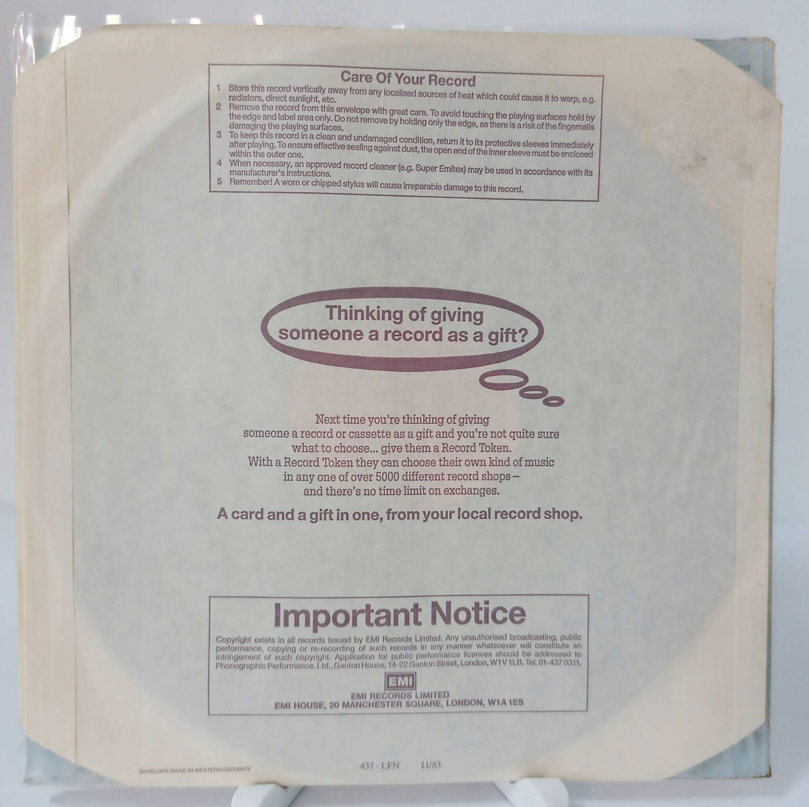 Każda płyta sprzedawana jest w foliowych kopertach: wewnętrznych i zewnętrznych.