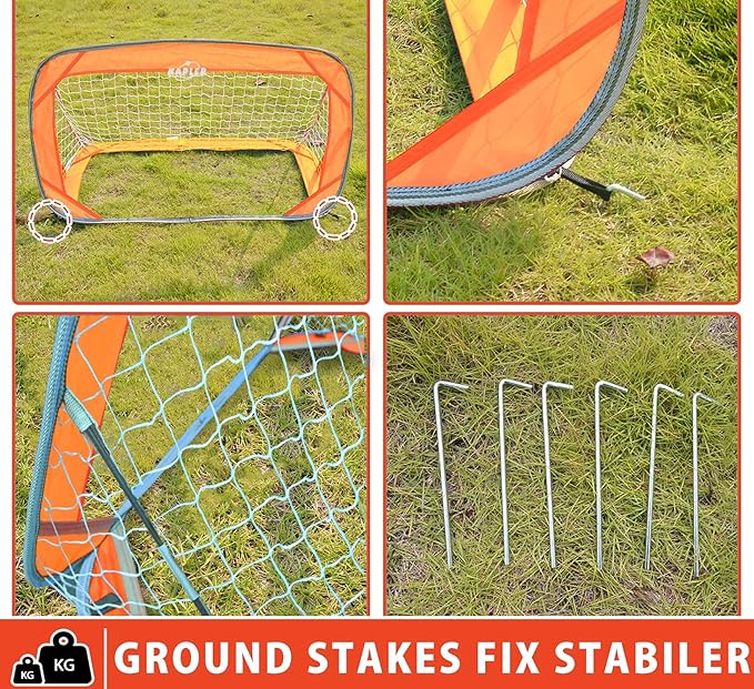 Zestaw 2 bramek do piłki nożnej: z zestawem 2 bramek Kapler masz wszystko, czego potrzebujesz do gry w piłkę nożną na świeżym powietrzu. Bramki mają solidną płaską stalową ramę i dwa pręty podporowe z pręta z włókna szklanego, co czyni je stabilnymi i wytrzymałymi.