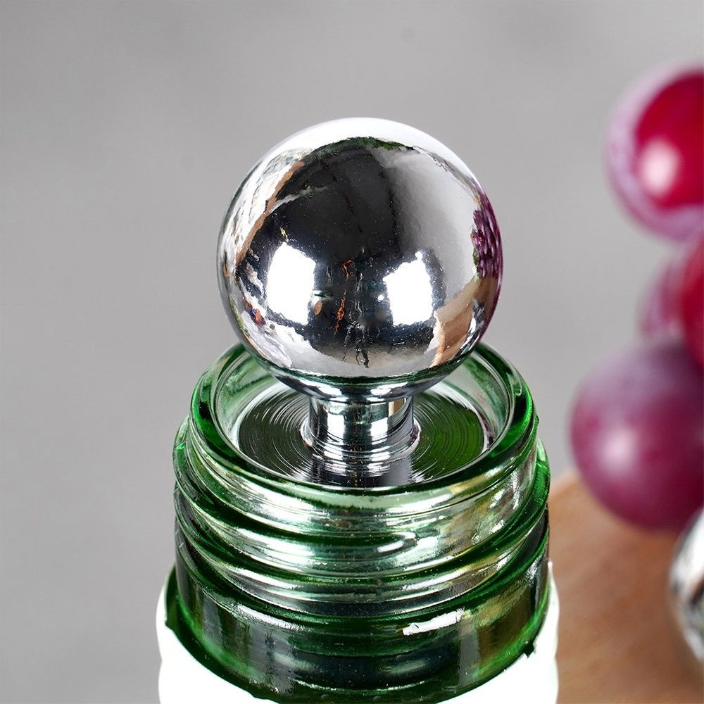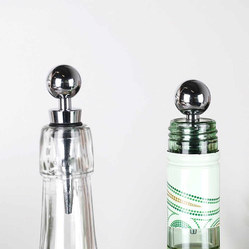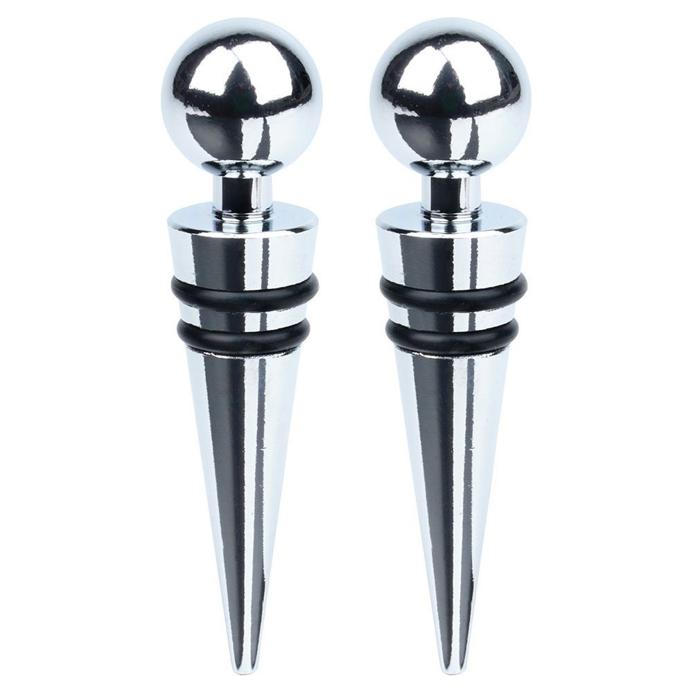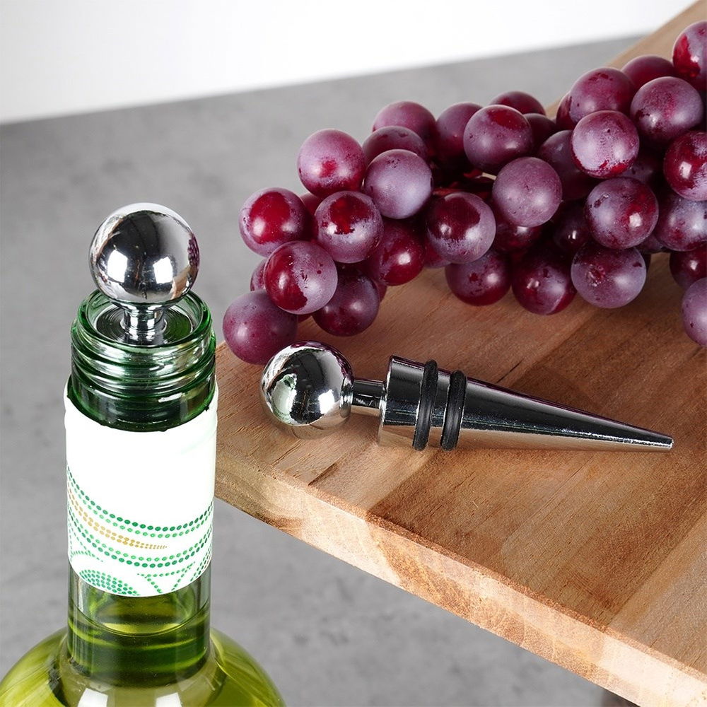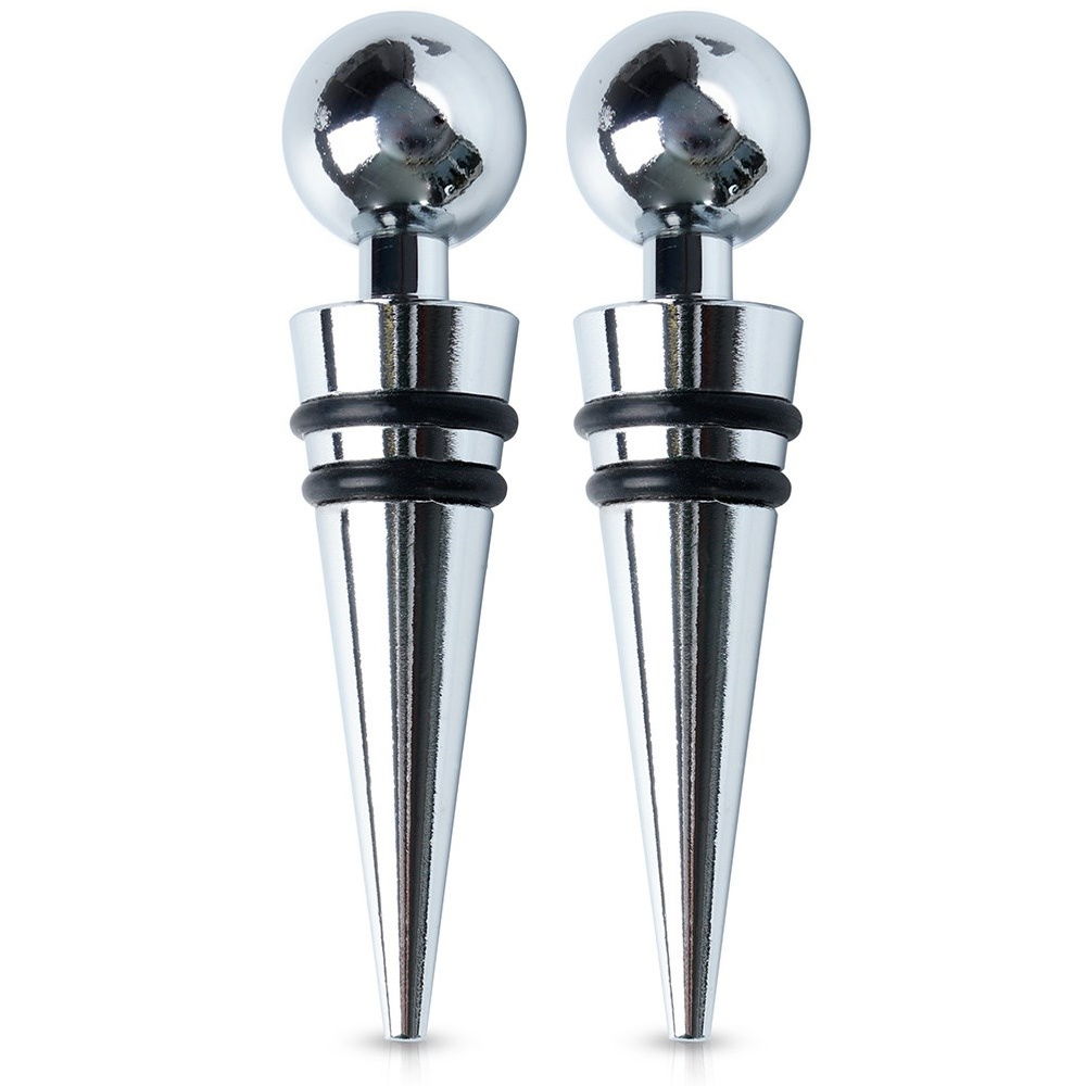 Komplet dwóch zatyczek do wina o długości 9 cm. Idealnie zabezpieczą wino, szampana lub inne trunki przed wylaniem i wygazowaniem. Dzięki nim wino zachowa dłużej swój smak i aromat. Zatyczki zamontujemy w łatwy sposób na butelce. Dzięki uchwytowi w kształcie kuli łatwo można je nałożyć i ściągnąć, co pozwala szybko cieszyć się napojem bez obaw o wylewanie. Zestaw świetnie sprawdzi się jako pomysł na prezent. Niezbędne w każdym domu miłośnika win.