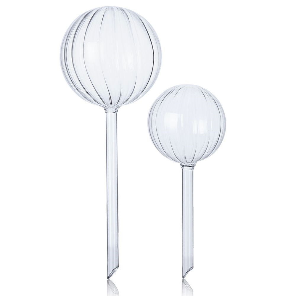 PRAKTYCZNE - Zestaw dwóch kul nawadniających do roślin. Przeznaczone do tego, by umieścić je w doniczce. Kule są w dwóch rozmiarach: mniejsza o średnicy 8 cm i długości 19 cm, większa o średnicy 10 cm i długości 27 cm.