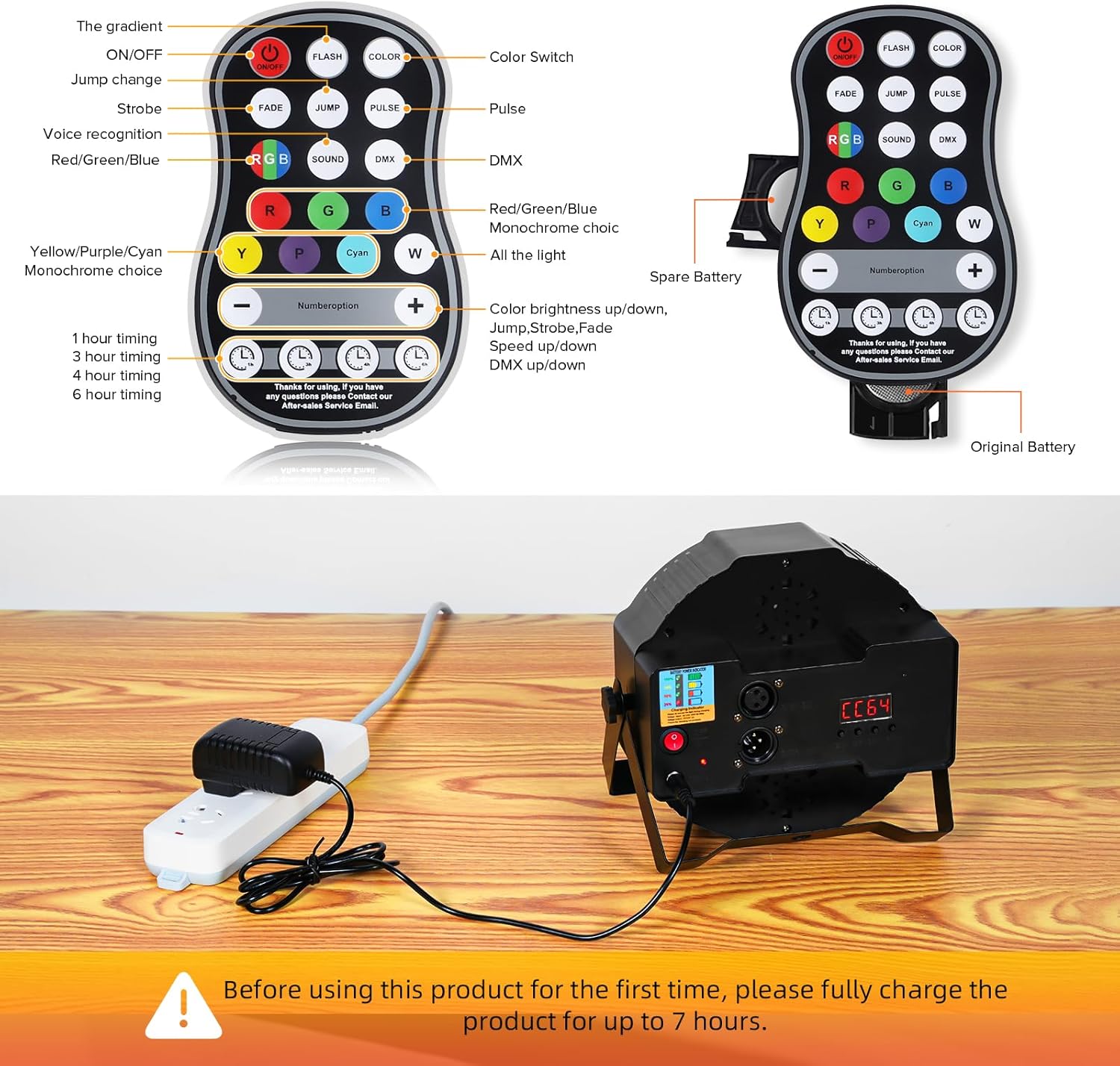 Akumulator LED Par: oświetlenie LED na imprezę z akumulatorem może być używane przez 4-12 godzin przy pełnym naładowaniu, bez kabli zasilających, które zakłócają scenę i imprezę, nie ma potrzeby instalowania w pobliżu gniazdka elektrycznego