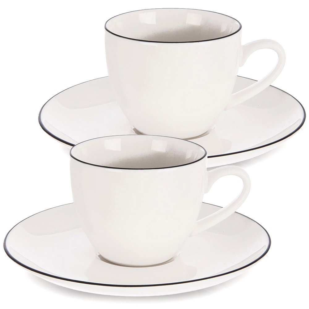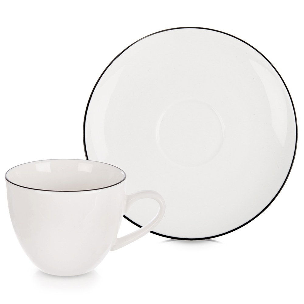 Wykonane z porcelany - Wykonane z najwyższej jakości porcelany w białym kolorze. Delikatne wykończenie w postaci cienkiej czarnej obwódki podkreśla elegancki charakter filiżanek i spodka i nadaje mu ponadczasowy wygląd. Delikatne wykończenie w postaci cienkiej czarnej obwódki podkreśla elegancki charakter talerza i nadaje mu ponadczasowy wygląd.