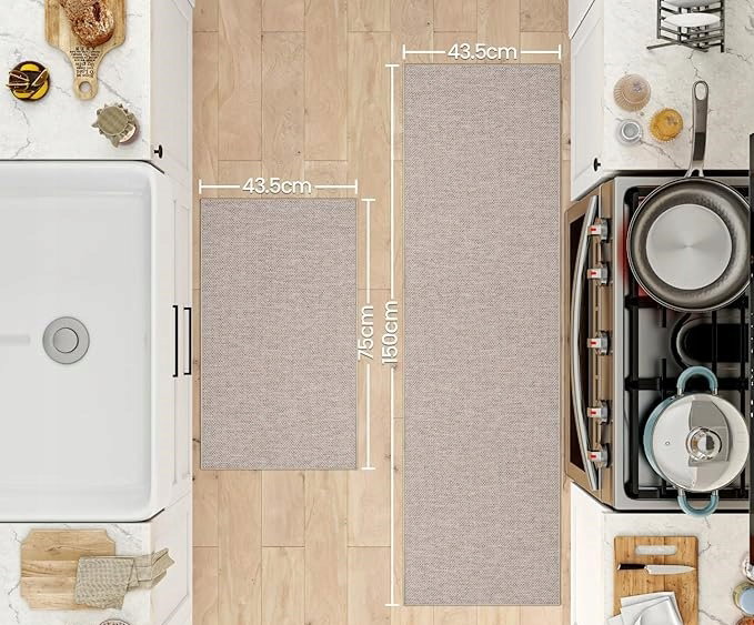 2x Mata kuchenna 44x75 + 44x150 cm Antypoślizgowa Wodoodporna - Beżowy