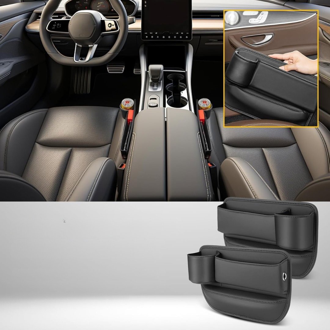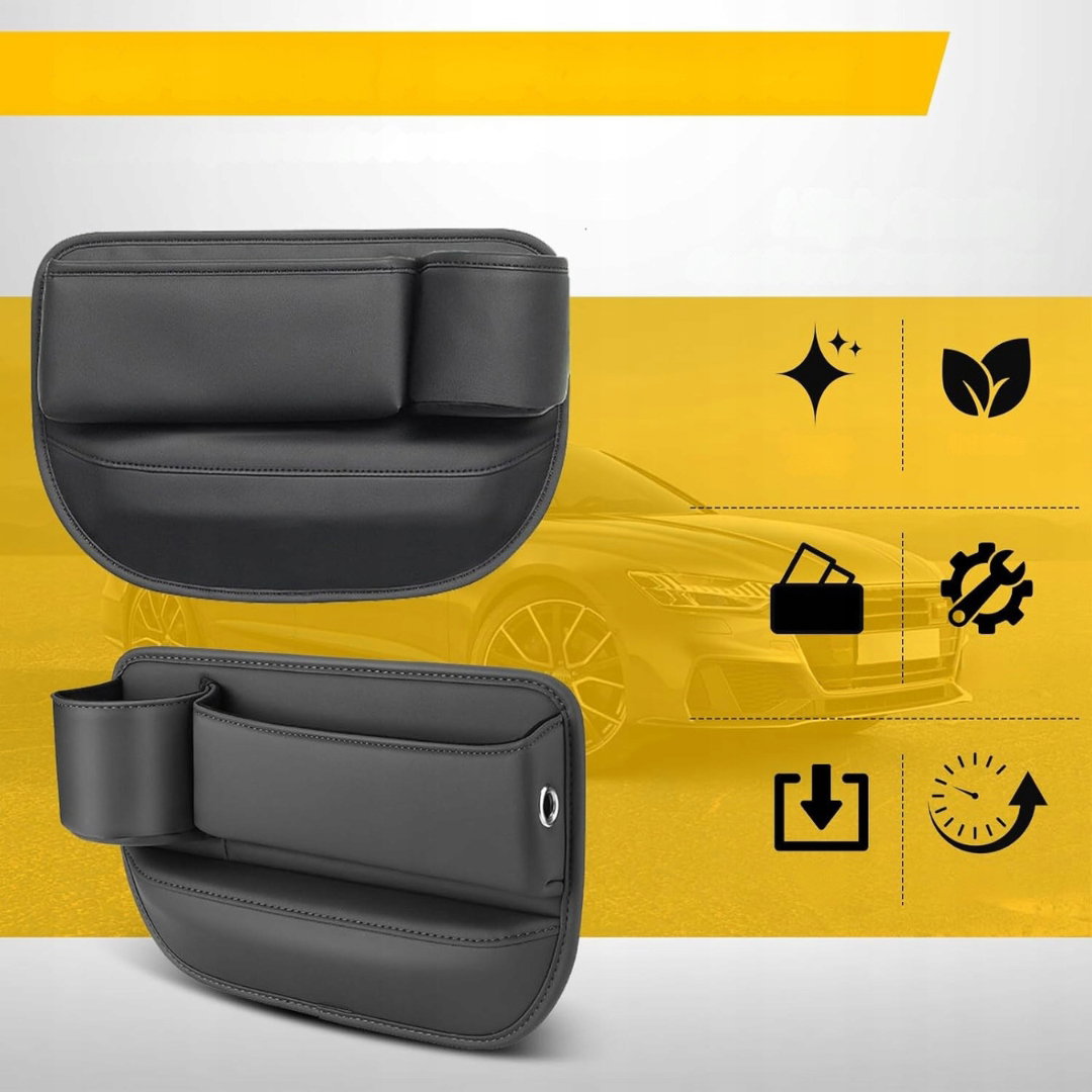 Zestaw organizerów do szczelin foteli samochodowych to praktyczne akcesorium wykonane ze skóry PU, zaprojektowane w celu zwiększenia przestrzeni do przechowywania w aucie.