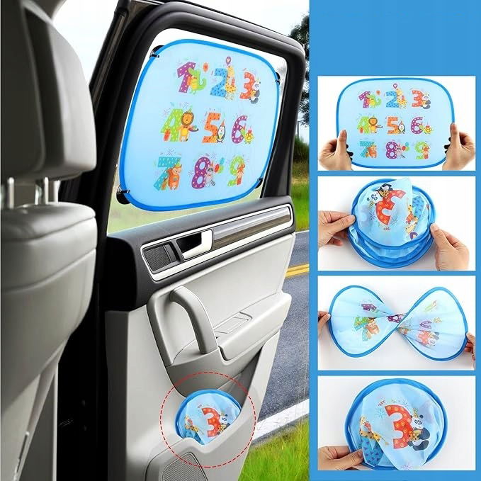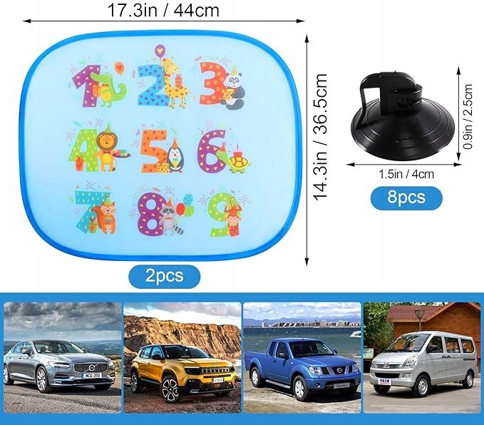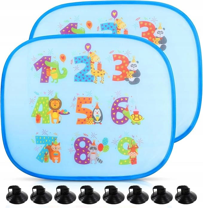 2x Osłona przeciwsłoneczna do Samochodu dla Dzieci 44x35 cm 8 przyssawek