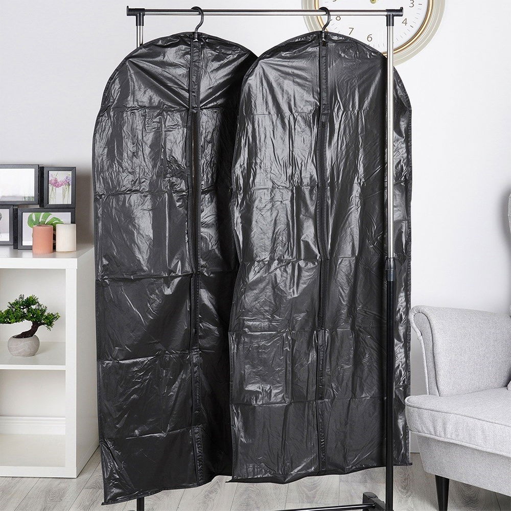 Zestaw dwóch uniwersalnych pokrowców na ubrania. Odpowiednio przechowywane ubrania mogą posłużyć nam przez długi czas. Pokrowce na ubrania, zaprojektowane z myślą o przechowywaniu garniturów, płaszczy, długich sukienek i innych ubrań. Pokrowiec sprawi, że ubranie nie pogniecie się, a jednocześnie zabezpieczy je przed kurzem czy wilgocią.