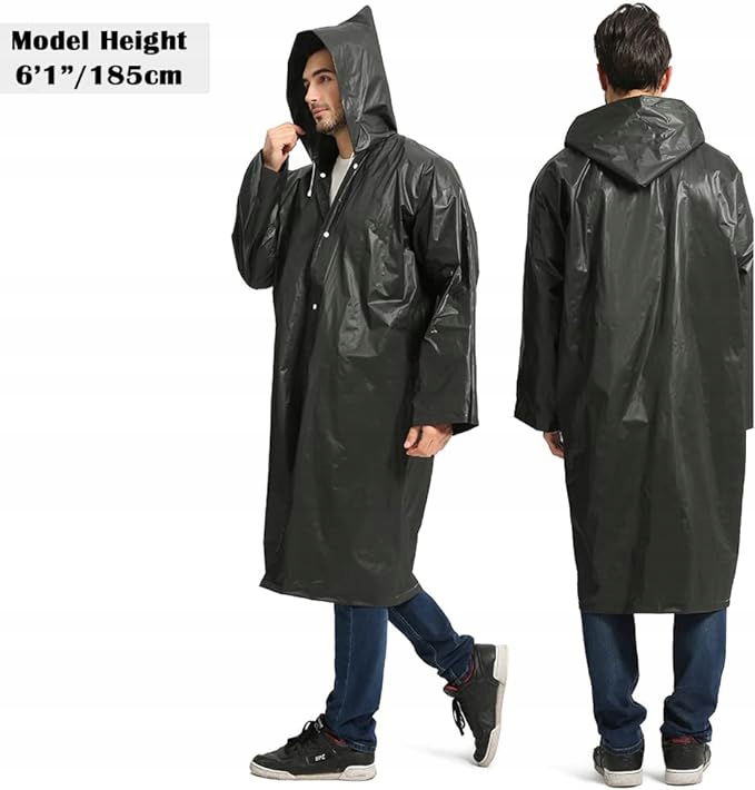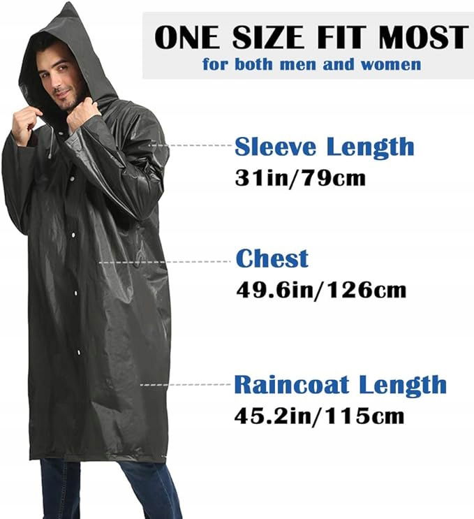 - Wodoodporne i przyjazne dla środowiska – wykonane w 100% z EVA, przyjaznego dla środowiska materiału, to ponczo przeciwdeszczowe wielokrotnego użytku jest niezwykle wodoodporne, a jednocześnie nietoksyczne, bezzapachowe i nieszkodliwe. Ponieważ jest lekki, płaszcz przeciwdeszczowy NIE nadaje się do ulewnego deszczu