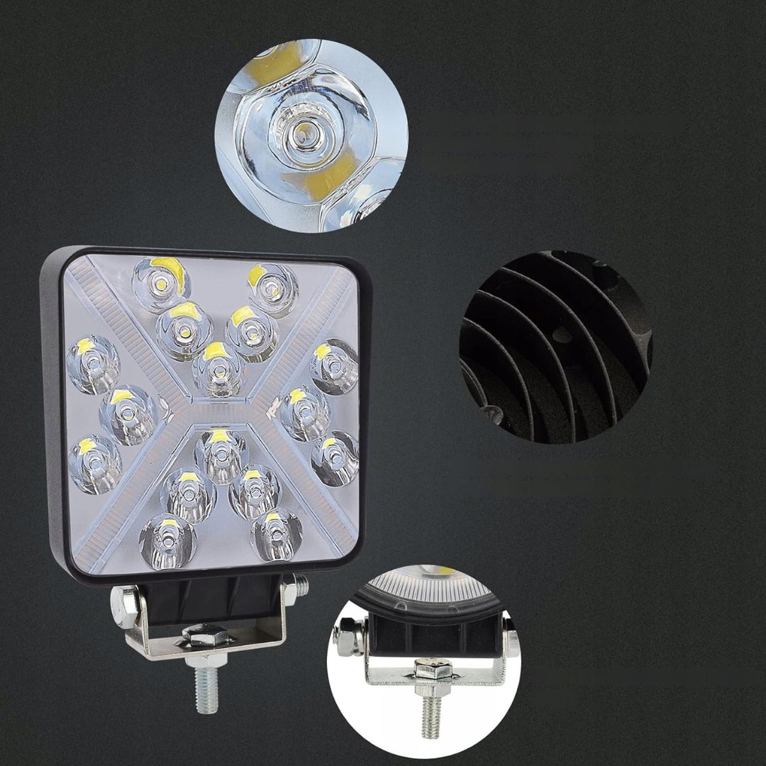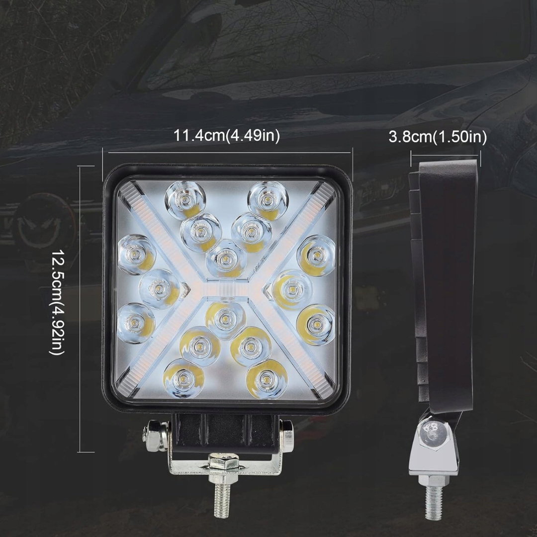 - Funkcjonalny: 4-calowy kwadratowy reflektor roboczy LED offroad wyposażony w zaawansowane chipy najwyższej jakości, emitujące białe i żółte światło. Zastosowane wzornictwo punktowe oraz Flood-Combo zapewnia skuteczne oświetlenie drogi w ciemności, umożliwiając dobrą widoczność zarówno na wprost, jak i na boki.