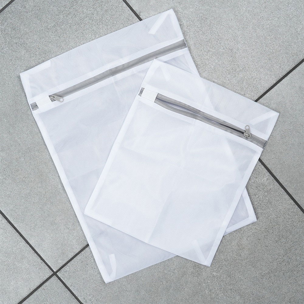 2 worki do prania w różnych rozmiarach - Zestaw dwóch worków do prania. Worki mają dwa rozmiary: worek mniejszy (24 x 29 cm) i worek większy (29 x 39 cm).