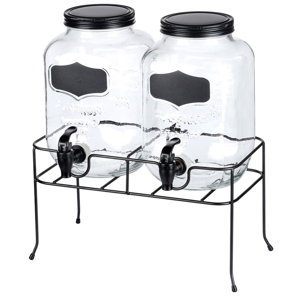 Zestaw składający się ze dwóch słojów z kranikiem oraz stojaka. Idealny zestaw do serwowania wody, lemoniady, soku, herbaty mrożonej, wody smakowej, ale również ponczu czy whisky. Dzięki kranikowi w łatwy sposób zaserwujemy ulubione napoje w sposób efektowny. Słoje wykorzystamy zarówno w ogrodzie, jak i podczas spotkań rodzinnych. Nie nadają się do napojów gorących.