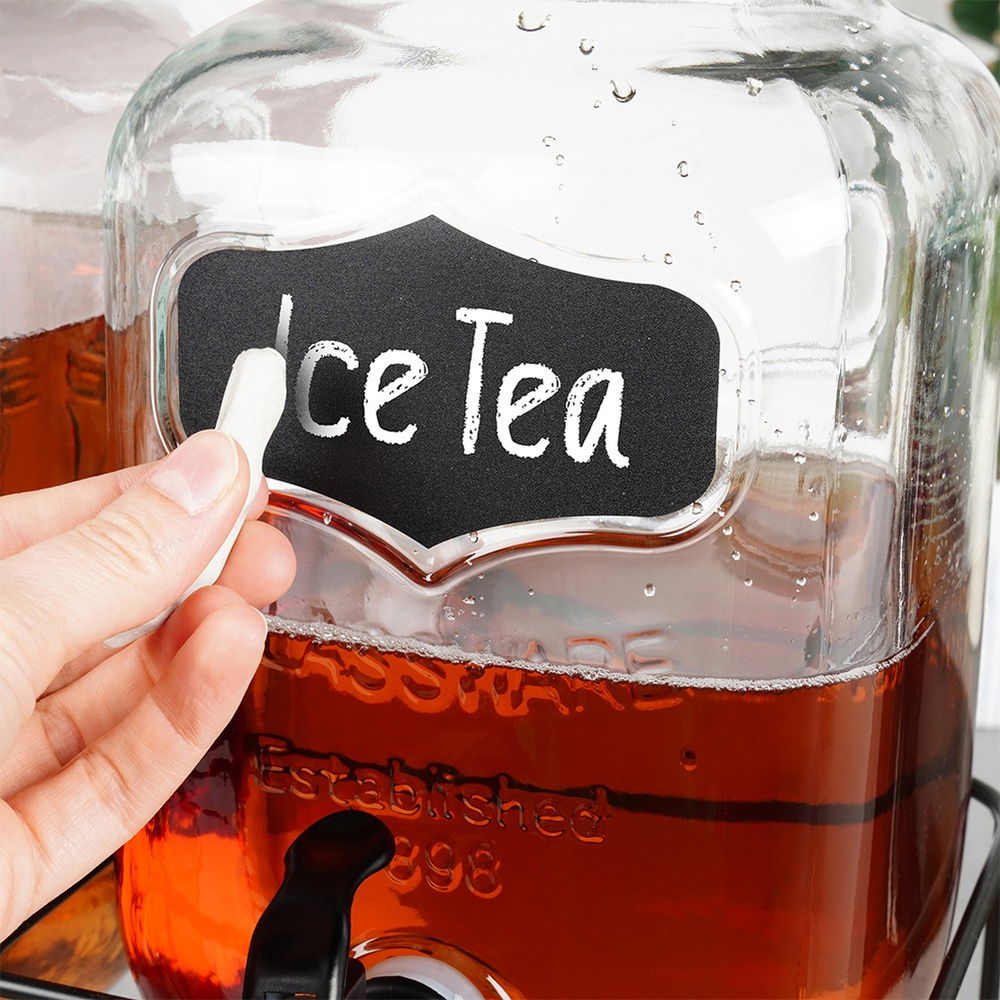 Wygodne użytkowanie - Tabliczki na słoikach pozwalają na opisanie ich zawartości kredą. Dzięki pokrywie nie trzeba się martwić, że osa, pszczoła czy inne owady wpadną nam do środka. Słój posiada szeroki otwór dla łatwego napełniania napoju oraz wygodnego czyszczenie. Słoje posiadają kranik z uszczelką dla łatwego nalewania napoju.
